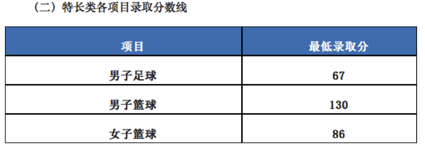 (三)特长类:文化成绩控制线为85分、特长成绩控制线26分。