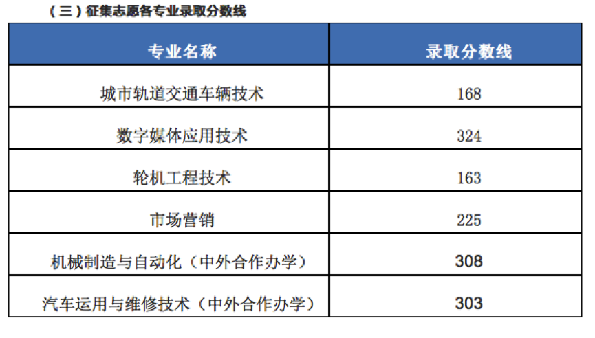 四川交通职业技术学院2020年单招录取分数线