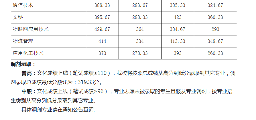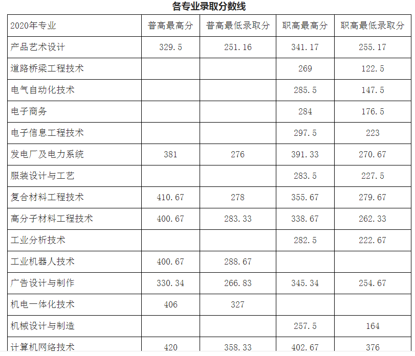 我院2020年单独招生考试文化成绩控制线、各专业及特长生最低录取分数线已经划定,现公示如下: