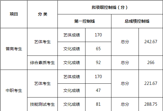 宜职院2020年单独招生拟录取控制分数线