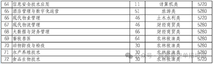 专业名称科类最高分最低分大数据与会计普高类356332建筑经济信息化管理(材料供应与管理)普高类355324现代物业管理普高类336321工程造价普高类384336工程造价(安装工程)普高类353326建设工程管理普高类356322城市轨道交通工程技术普高类357330铁道工程技术普高类353336建筑工程技术普高类370341建筑工程技术(工程质量与