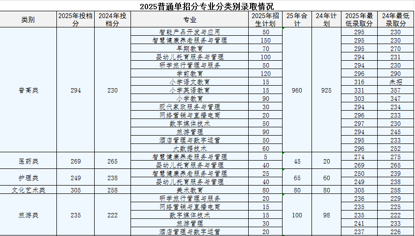 2024年-2025年普通类单独招生考试各专业录取分数线