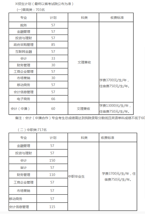 四川财经职业学院2020年单独招生简章