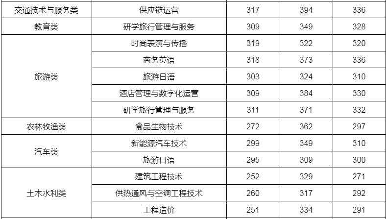 南充职业技术学院2024年高职单招考试各专业录取分数线
