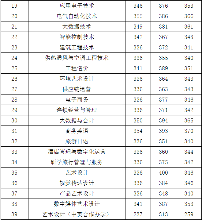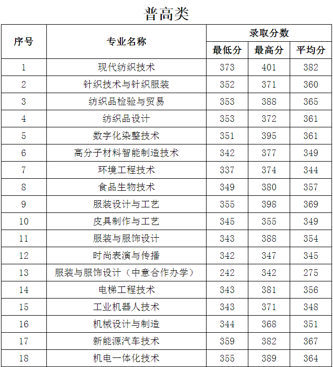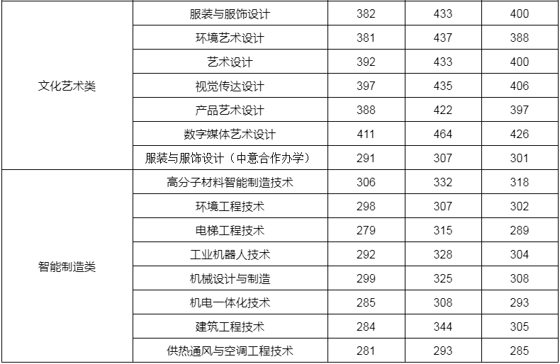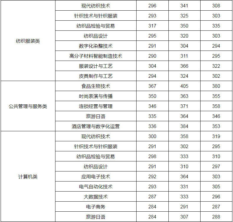 成都纺织高等专科学校2024年高职单招考试各专业录取分数线: