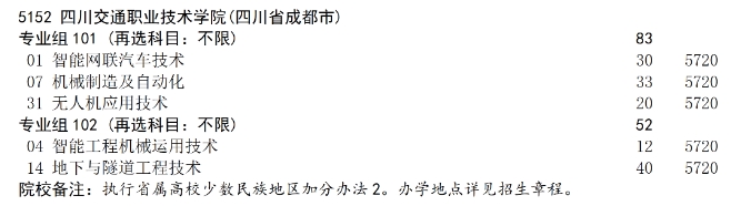 四川交通职业技术学院2025年普通高校招生专科层次补录专业计划