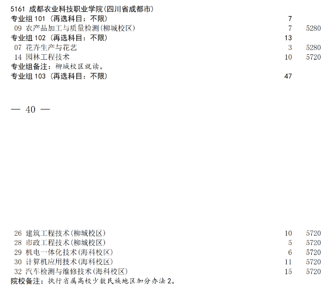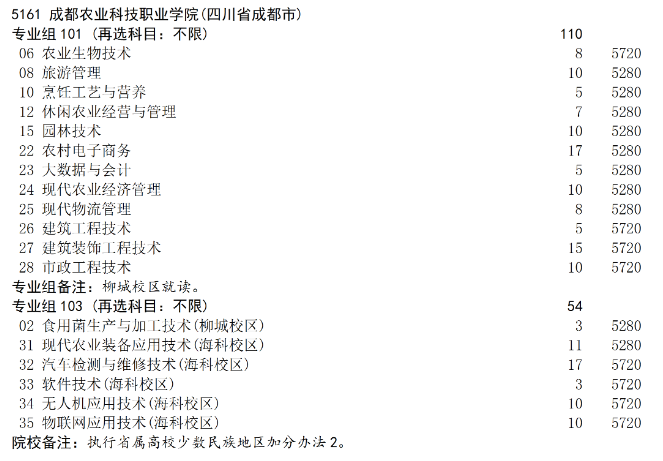 成都农业科技职业学院2025年普通高校招生专科层次补录专业计划